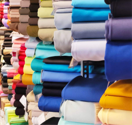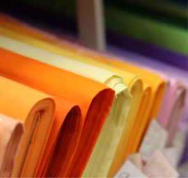 ľan, pružné, vodeodolné látky ako polyester, softshell, látky na spoločenské či klasické šaty, obrusy, látky