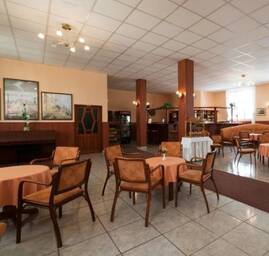 Hotel je skutočným architektonickým klenotom, ponúka moderné metódy liečby reumatizmu a pohybového aparátu, termálna minerálna voda, unikátne sírne liečivé bahno.